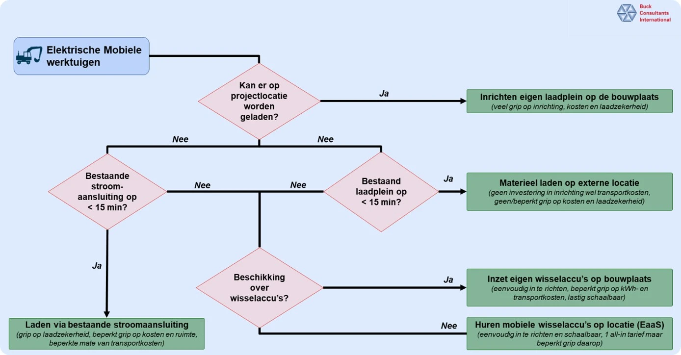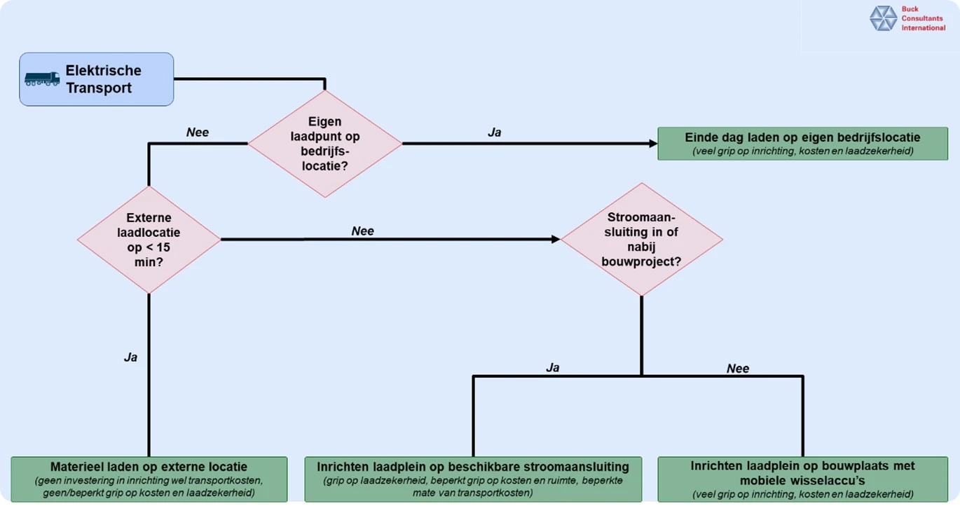 Buck Consultants International (BCI) bracht deze gevolgen in kaart in een verkennende studie voor de Topsector Logistiek. De studie zet verschillende laadopties naast elkaar en laat zien wat ze in de praktijk betekenen voor bouwprojecten die willen versnellen richting Schoon en Emissieloos Bouwen.